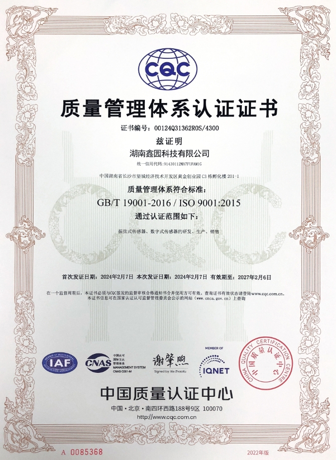 质量管理体系认证证书(中文版)